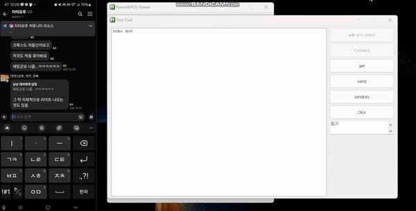 - 한글 Send 시 별도의 SDK가 필요함 (https://github.com/senzhk/ADBKeyBoard)