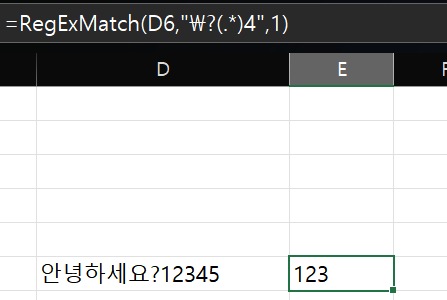 SubMatches 를 사용하여 ? ~ 4 사이의 데이터를 추출합니다예제 1번의 패턴은 읽어올 범위 시작 문자와 끝 문자가 포함돼서 추출되지만본 패턴은 포함시키지 않기 위해 사용합니다